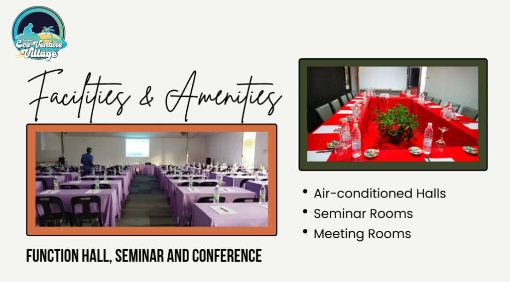 Each hall can be arranged to suit your needs, with flexible seating setups, air-conditioning, and audio-visual facilities available.