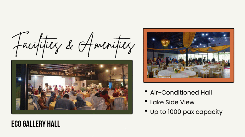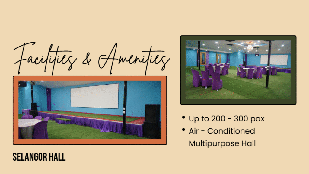 • Customizable Spaces – From 30 pax meetings to 500 pax celebrations, our halls are versatile.
